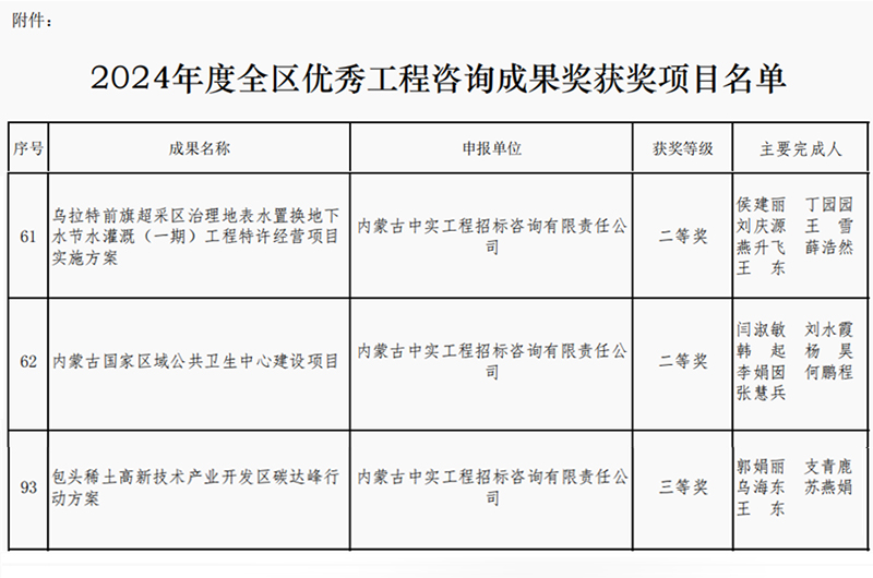 2025-04-168199 次2025年4月16日,内蒙古工程咨询协会公布了2024年度优秀咨询成果奖获奖单位名单,我司取得两个二等奖和一个三等奖,我司专业能力和服务质量再次获得行业的认可。此次获奖,不仅体…